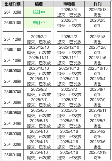 期刊稿酬发放及样刊邮寄公告