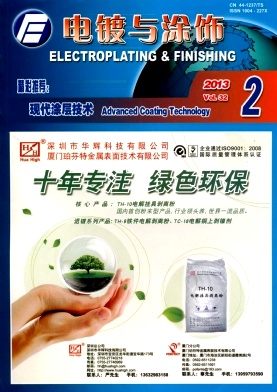 [目的]研究双氧水在化学镀Ni–P合金过程中对镀层结构与耐蚀性的影响,以提高Ni–P合金镀层的耐蚀性。[方法]在基础化学镀镍液中添加不同体积分数(0~1.0 mL/L)双氧水,通过测厚法分析沉积速率变化;采用金相显微镜、扫描电镜(SEM)、能谱仪(EDS)和X射线衍射仪(XRD)分析了Ni–P合金镀层的表面形貌、元素组成及晶体结构;通过硝酸点滴试验和电化学测试分析了镀层的耐腐蚀性能。[结果]双氧水的加入降低了化学镀镍的沉积速率,使镀层表面胞状颗粒排列更紧密。所得Ni–P合金镀层的P质量分数均在6%~9%之间,呈非晶态结构。随着双氧水体积分数增大,镀层的耐蚀性先改善后变差,在0.6 mL/L时耐蚀性最佳。[结论]镀液添加适量双氧水可有效提高Ni–P合金镀层的耐蚀性,其作用机制与镀层致密度和磷含量密切相关。