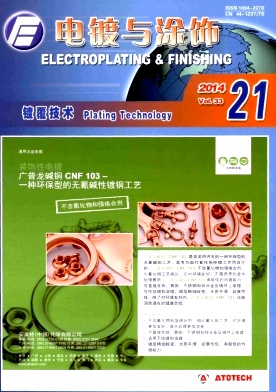 [目的]为解决锌合金压铸件氰化物镀金污染严重、整体耐蚀性不足等问题,开发一种高耐蚀镀金新工艺。[方法]对锌合金基体依次进行无氰镀铜锌合金、焦磷酸盐镀铜、镀酸铜、镀光亮镍、镀镍锡合金和镀冲击金。[结果]本工艺在高防腐镍锡合金镀层上镀冲击金,镀层间结合良好,经热震试验无起泡或脱落,中性盐雾试验240 h无锈蚀。[结论]该工艺绿色环保,镀层性能优异,成本较低,具有良好的应用前景和市场推广价值。