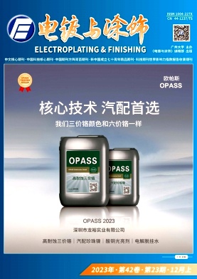 [目的]镁合金由于具有高比强度和低密度,被广泛用于3C电子产品及5G基站。然而镁合金耐蚀性较差制约了其进一步的应用,需要对镁合金进行适当的表面防护处理。[方法]通过蚀刻、漂白、化学转化、封闭等工艺,在镁合金表面制备了一种锆-钙-钒系复合转化膜。通过扫描电子显微镜(SEM)、能谱仪(EDS)、中性盐雾(NSS)试验、电化学工作站、直流电阻测试仪等手段对膜层的微观形貌、成分、耐蚀性及导电性进行了表征。[结果]原位转化处理后的镁合金表面形成了一层极薄的复合转化膜,动电位极化曲线和电化学阻抗谱(EIS)测试结果显示经转化处理后试样的膜电阻是未处理时的1.37倍,封闭后更增至2.10倍,且耐NSS时间超过48 h。蚀刻+漂白处理后镁合金的接触电阻从未处理时的0.711 mΩ略微下降至0.705 mΩ,而在转化+封闭处理后接触电阻仍维持在0.811 mΩ,展现出良好的导电性。[结论]该耐蚀-导电复合转化技术为镁合金在3C产品和5G基站领域中的应用提供了技术支持。